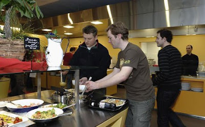 Gambar di atas adalah gambaran persekitaran kerja disebalik tabir Google. com. Persekitaran kerja sebegini adalah bertujuan untuk keselesaan kakitangan dan seterusnya meningkatkan kualiti dan produktiviti pekerja. Untuk menghilangkan tekanan pekerja, kapsul penghilang tekanan yang kedap bunyi dan cahaya disediakan kepada kakitangan. Disamping Kapsul disediakan juga pusat permainan, pusat urut profesional, perpustakaan dan juga tempat rehat yang lengkap dengan kerusi urut dan berhadapan dgn pemandangan akuarium. Selain daripada itu, pelbagai makanan istimewa juga disediakan setiap hari khas untuk kakitangan yang bertugas.